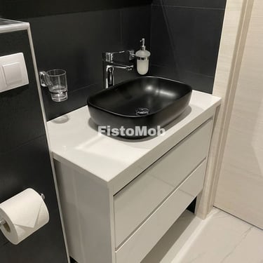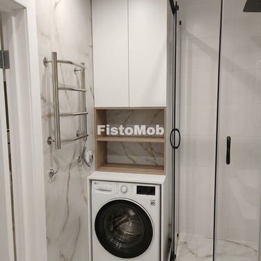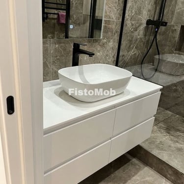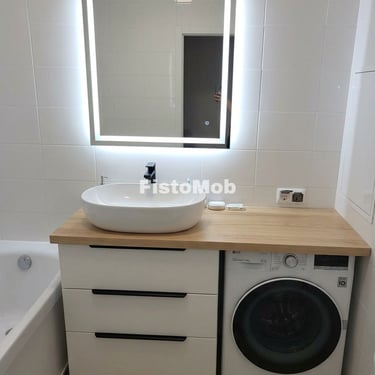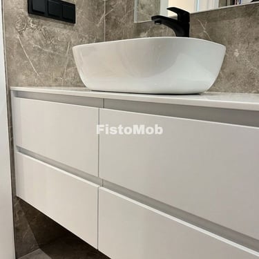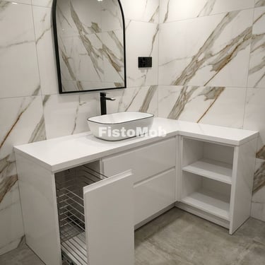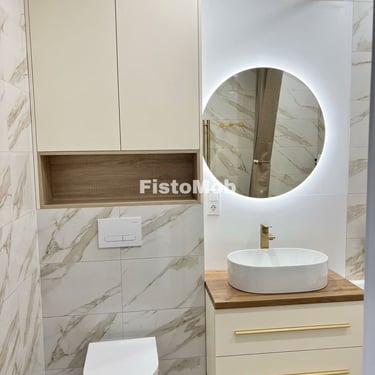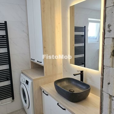"Baia ta, propriul tău SPA. Creăm mobilier care rezistă perfect la umezeală și ascunde inteligent dezordinea, transformând ritualul tău zilnic într-o experiență de lux și prospețime. Detalii impecabile pentru liniștea ta deplină.".